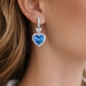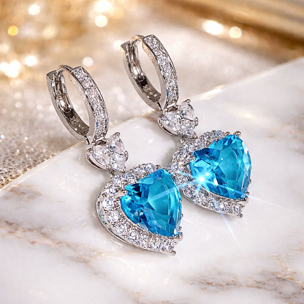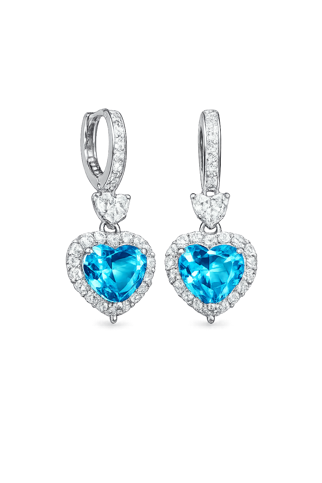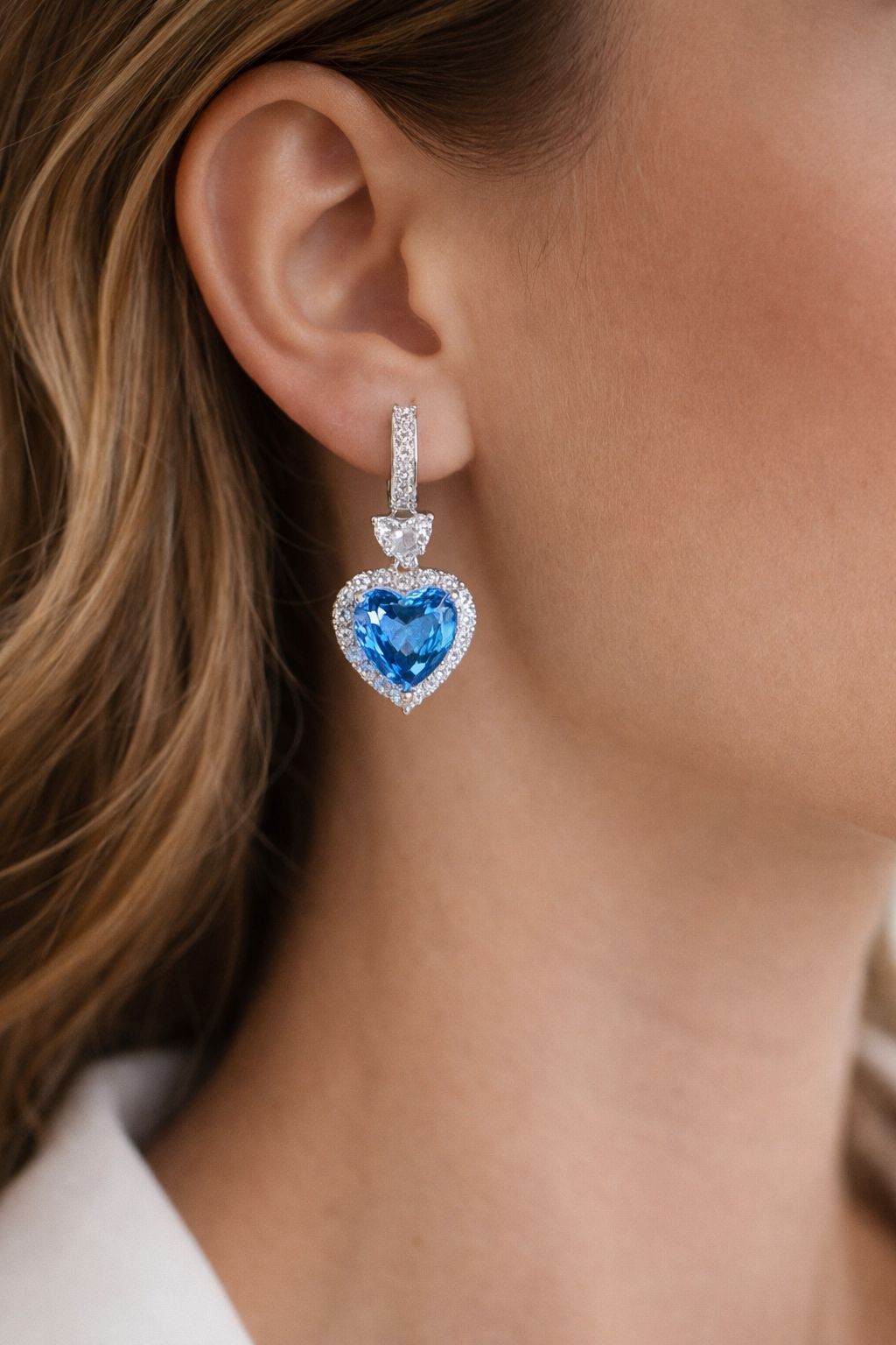Kolczyki Serce – Srebro 925 + cyrkonie (niebieskie serduszko)