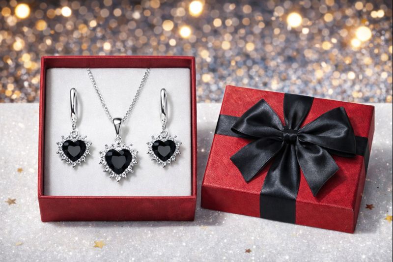 Komplet srebrnej biżuterii 925 z motywem czarnego serca