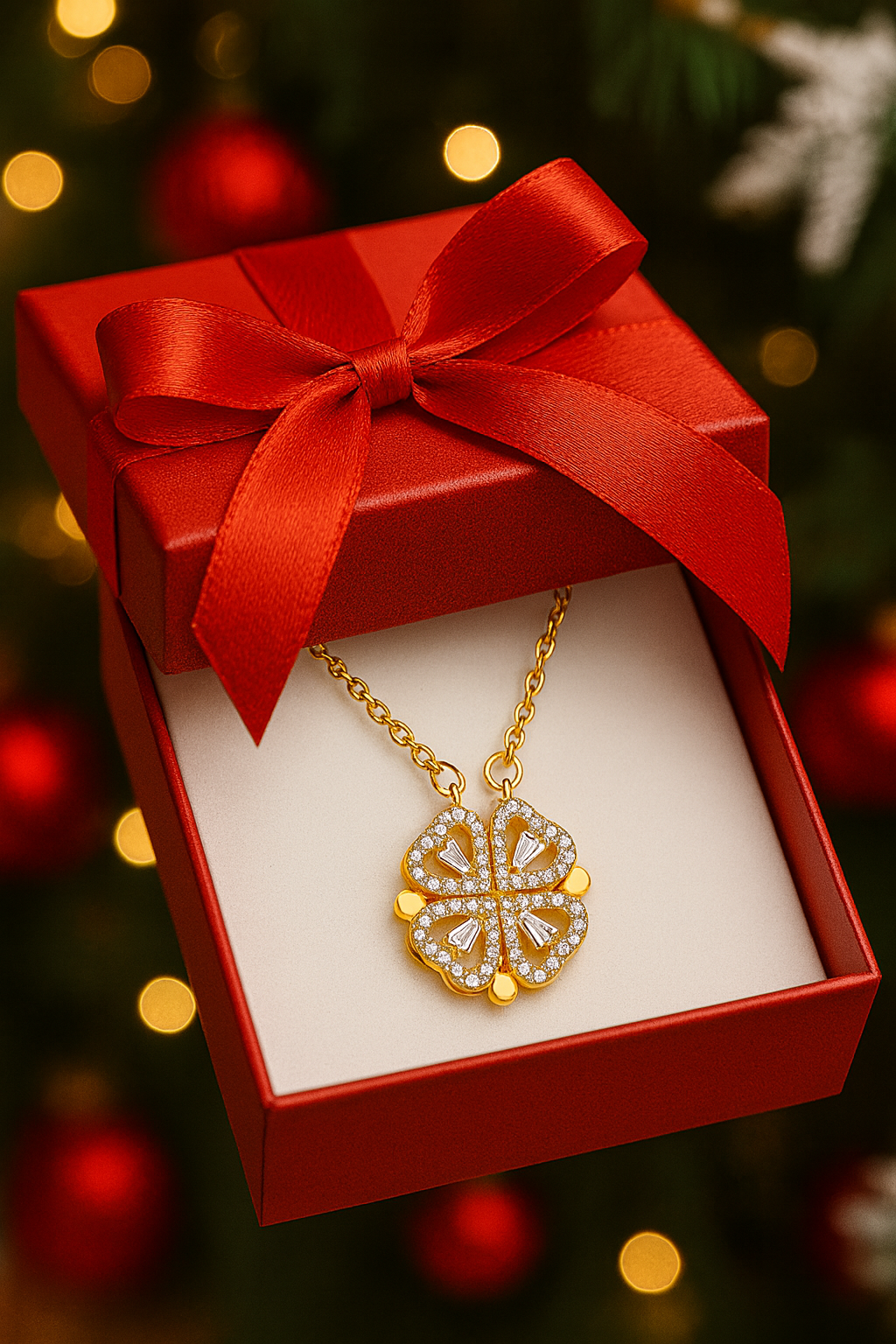 Dzięki unikalnej konstrukcji wisiorka możesz samodzielnie zmieniać jego kształt – wybierz romantyczne serce, by podkreślić uczucia, lub czterolistną koniczynę, symbol szczęścia, harmonii i miłości. Jeden naszyjnik, dwa znaczenia – idealny na każdą okazję ✨