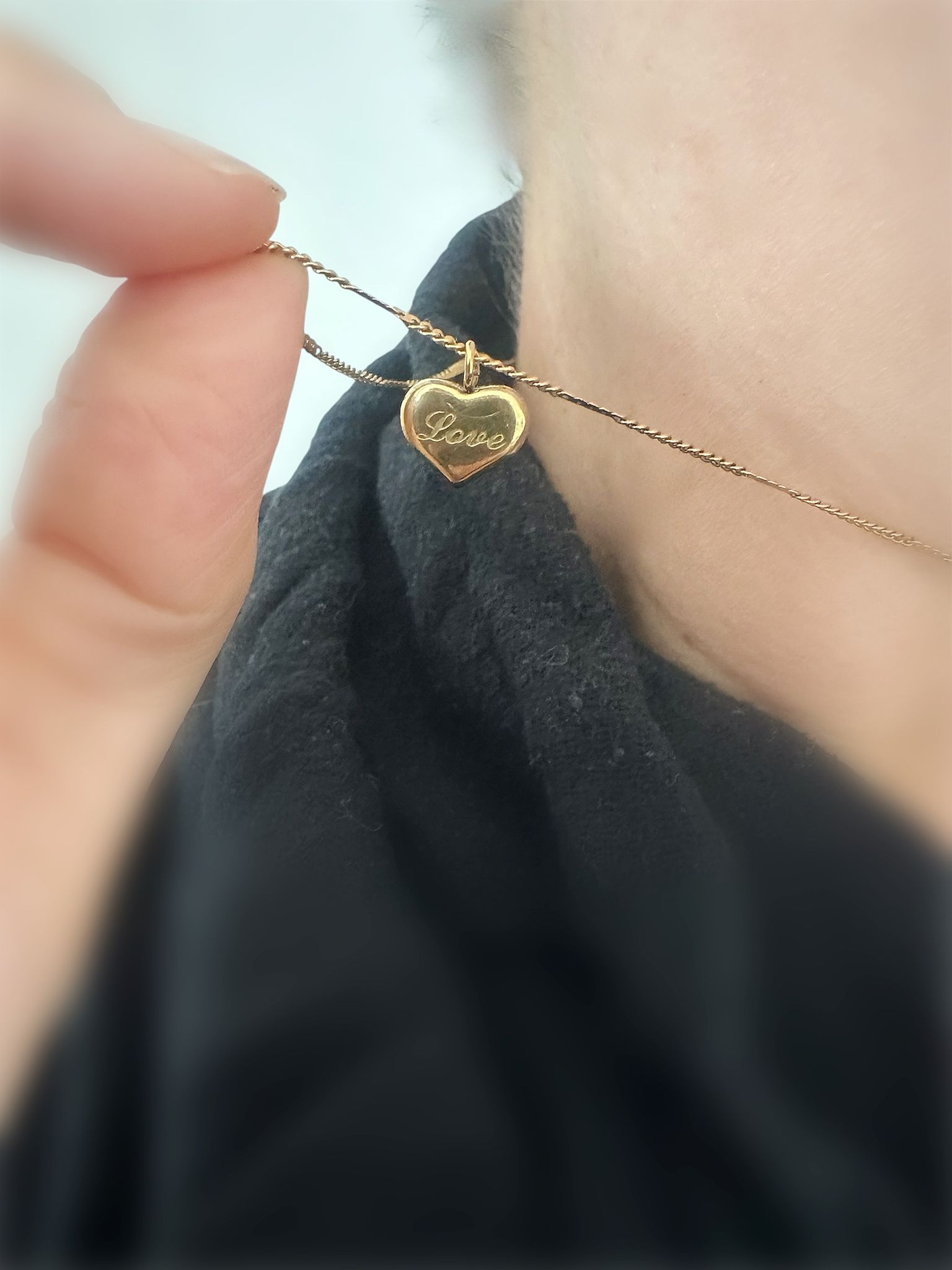 Minimalistyczny, kobiecy i subtelny. Ten naszyjnik wykonany został z wysokiej jakości stali chirurgicznej 316L, dzięki czemu jest trwały, odporny na zarysowania i bezpieczny dla wrażliwej skóry. Zawieszka w kształcie serca z grawerem love dodaje mu romantycznego charakteru.