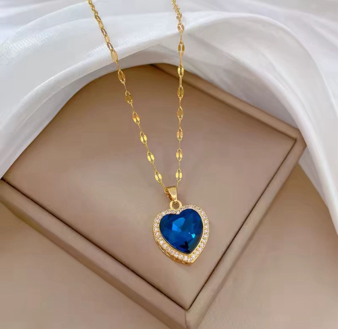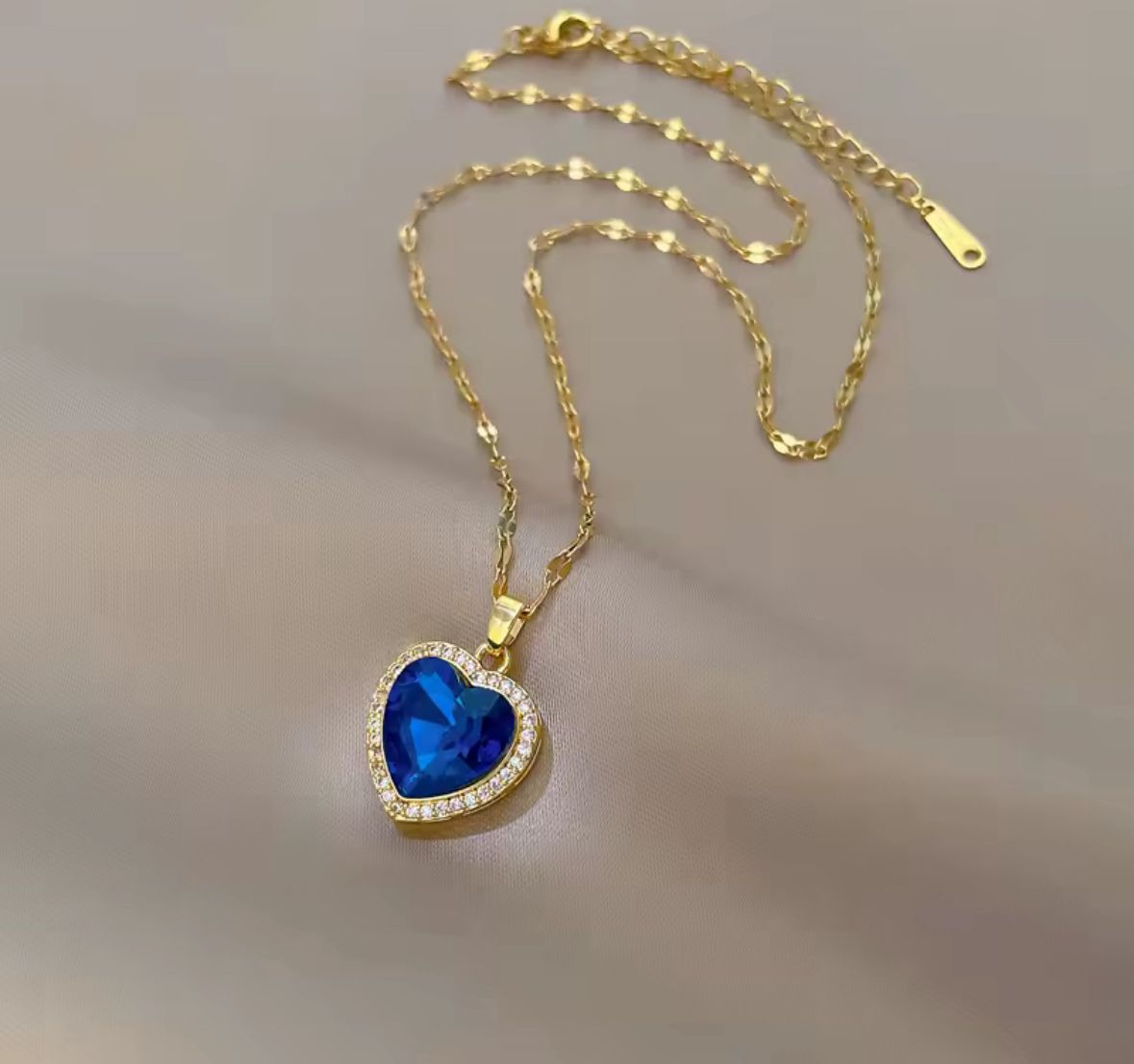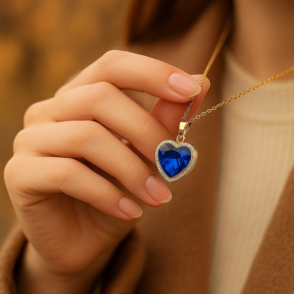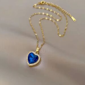Zawieszka w kształcie serduszka kryje w sobie intensywnie niebieski kryształ, otoczony drobnymi, lśniącymi cyrkoniami. To połączenie klasyki i świeżości sprawia, że naszyjnik idealnie sprawdzi się zarówno na co dzień, jak i podczas wyjątkowych okazji.