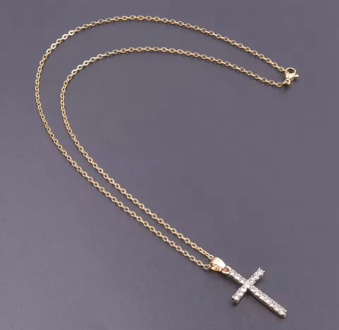 naszyjnik z krzyżykiem, naszyjnik krzyżyk stal chirurgiczna, krzyżyk z cyrkoniami, łańcuszek z krzyżykiem damski