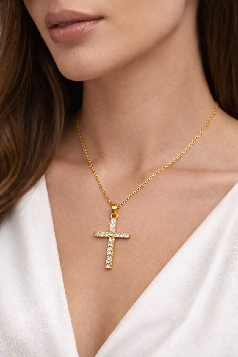 ✨ Naszyjnik z krzyżykiem – stal chirurgiczna + cyrkonie
