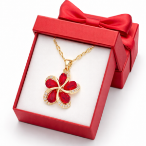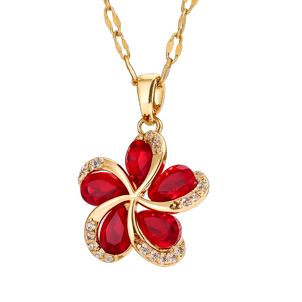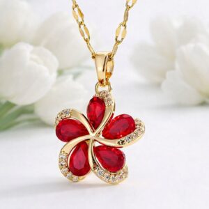 ✨Piękny naszyjnik z kwiatem czerwonym wykończony cyrkoniami