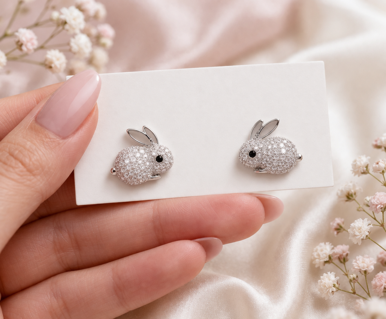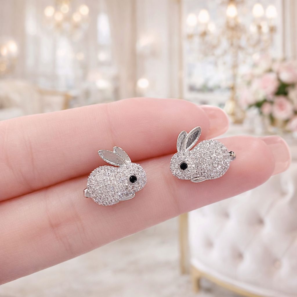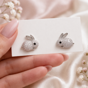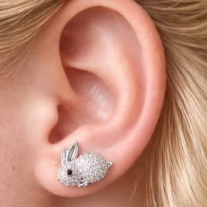 Urocze kolczyki króliczki – delikatna i błyszcząca biżuteria damska. Idealne na co dzień oraz jako prezent na Wielkanoc.