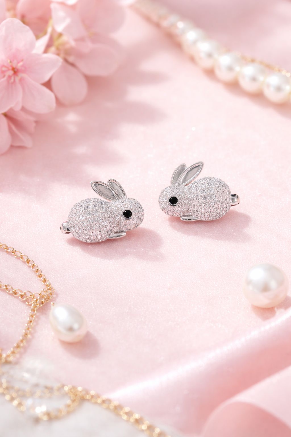 Kolczyki króliczki damskie – delikatne kolczyki z połyskiem, biżuteria na co dzień i święta