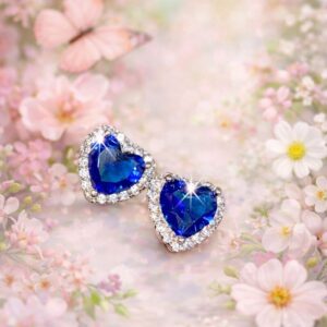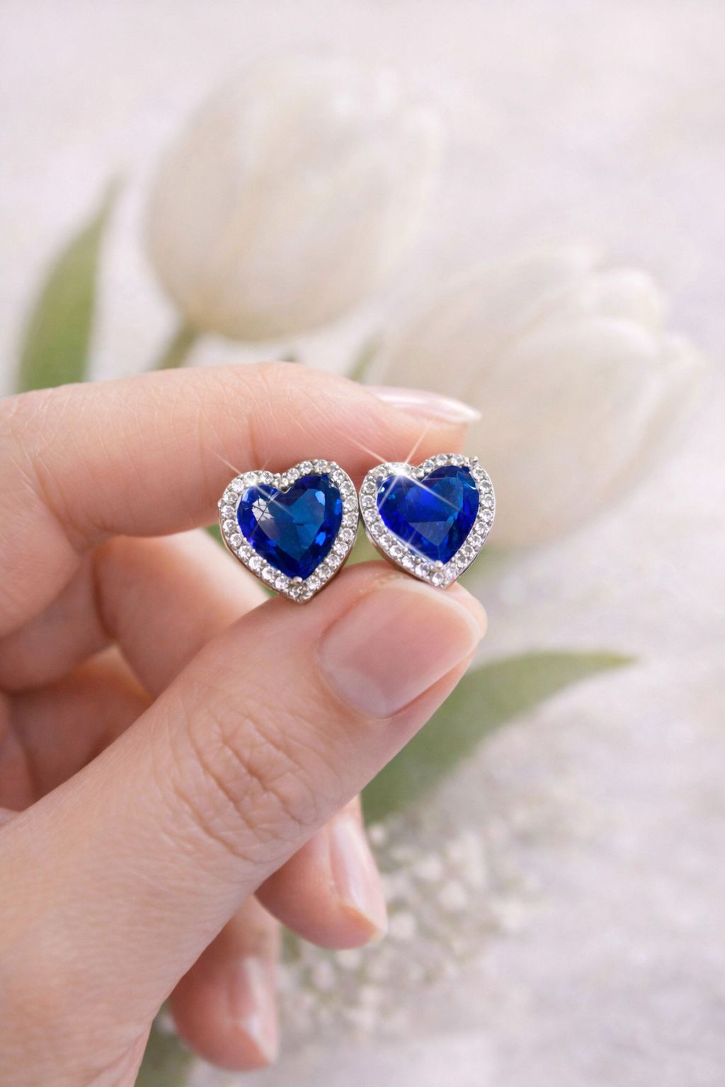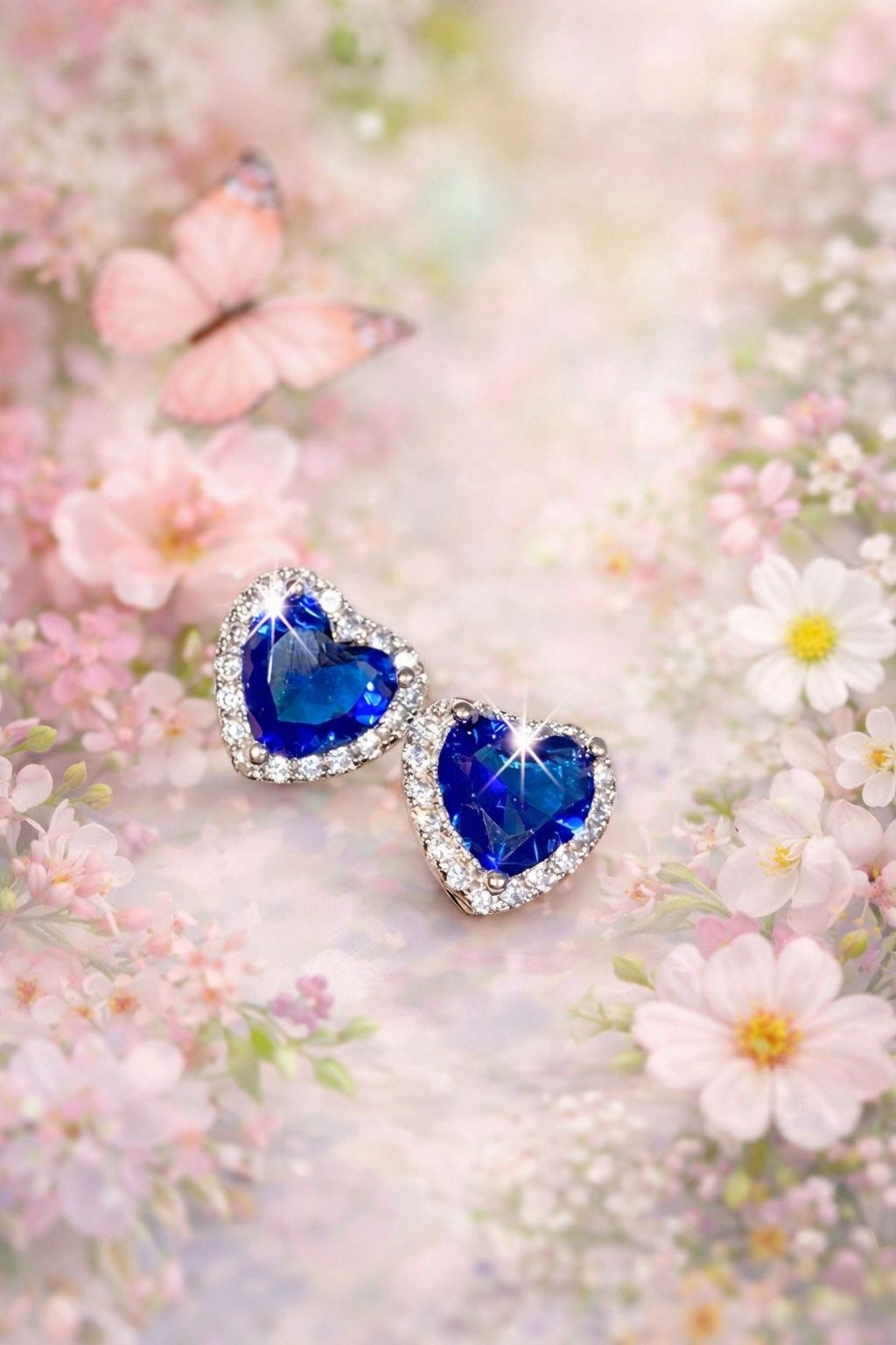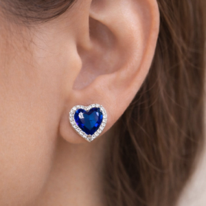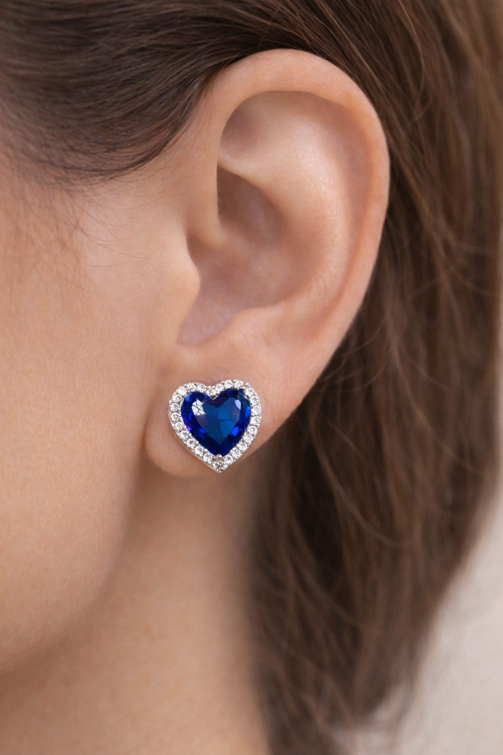 Srebrne Kolczyki Serce – Srebro 925 z niebieską Cyrkonią