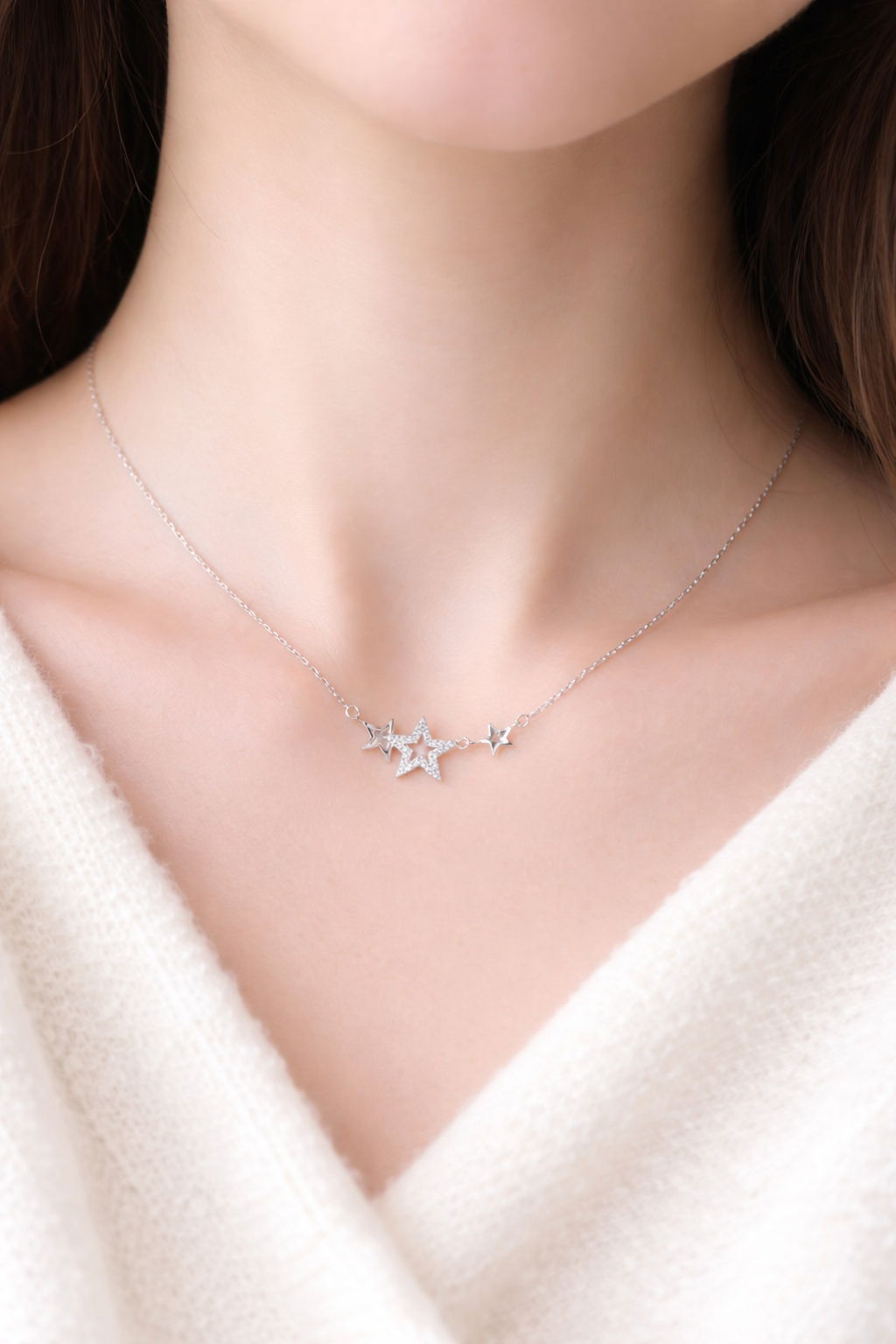 Subtelny naszyjnik wykonany ze srebra próby 925 to idealna propozycja dla kobiet, które kochają lekką, kobiecą biżuterię. Motyw gwiazdek symbolizuje marzenia, blask i wyjątkowość – pięknie podkreślając dekolt ✨