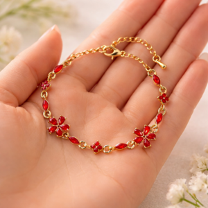 Połączenie klasycznego złota i głębokiej czerwieni nadaje bransoletce luksusowy charakter – prezentuje się niezwykle efektownie zarówno w dziennych stylizacjach, jak i podczas eleganckich wyjść.